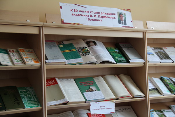 В читальном зале естественных и технических наук Центральной научной библиотеки имени Якуба Коласа Национальной академии наук Беларуси демонстрируется выставка «К 80-летию со дня рождения академика В. И. Парфёнова, биолога, эколога».
