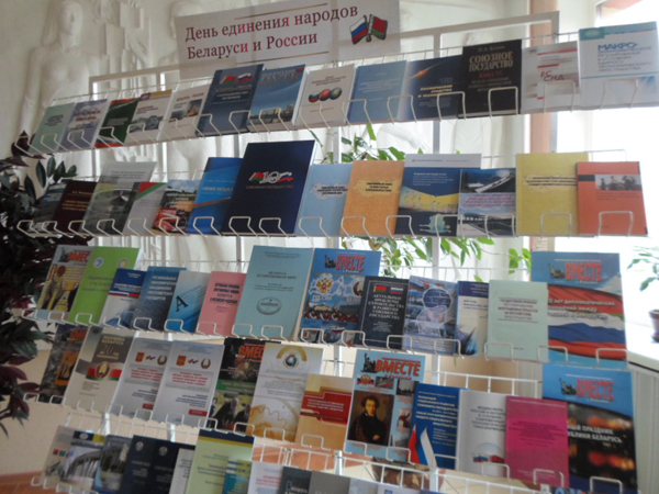 Выставка, посвященная Дню единения народов Беларуси и России, демонстрируется в холле 1 этажа Центральной научной библиотеки им. Я. Коласа Национальной академии наук Беларуси.