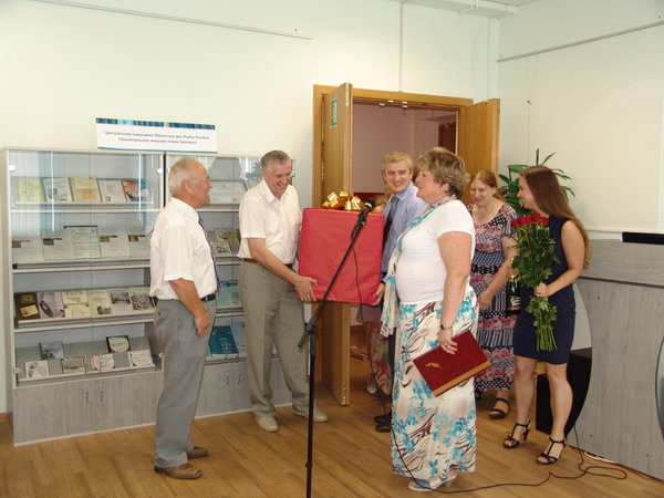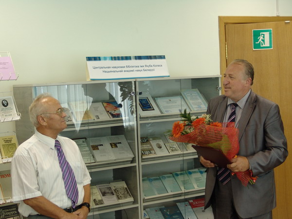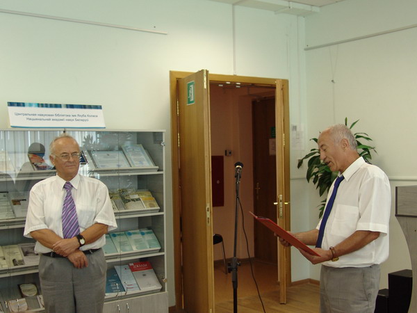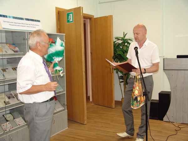 С приветственных словом к присутствующим обратился Первый заместитель председателя Президиума НАН Беларуси Чижик Сергей Антонович. Зачитав поздравительный адрес от имени Председателя Президиума НАН Беларуси со словами благодарности за многолетнюю работу в области литературоведения, наградил юбиляра “Почетной грамотой”.