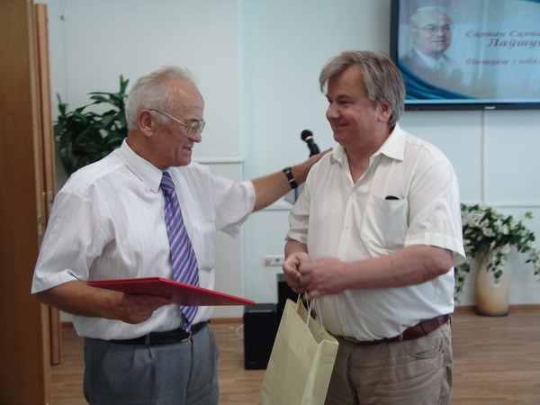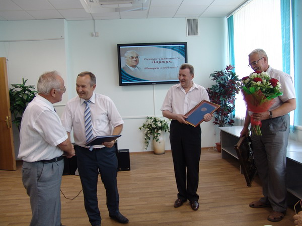 Свои слова поздравления высказал заместитель председателя Высшей аттестационной комиссии Республики Беларусь Данилов Александр Николаевич. С.С. Лавшуку была вручена “Благодарность за многолетнюю работу” от ВАКа. От себя лично А.Н. Данилов добавил, что Степан Степанович является человеком, имеющим свою позицию, и всегда умеющим ее отстоять.