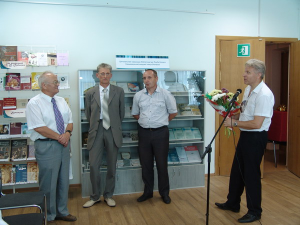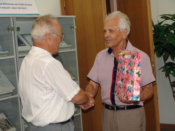Прозвучали поздравления и от дирекции Филиала Центра – Института языка и литературы имени Я.Коласа и Я.Купалы НАН Беларуси – директора Лукашанца Александра Александровича, заместителя директора по научной работе – Гаранина Сергея Леонтьевича и ученого секретаря Копылова Игоря Леоновича. Лукашанец А.А. выразил признательность юбиляру за многолетнюю и плодотворную работу, без которой, по словам руководителя института, сегодняшняя белорусская литература, литературоведение и вся гуманитарная наука были бы иными.